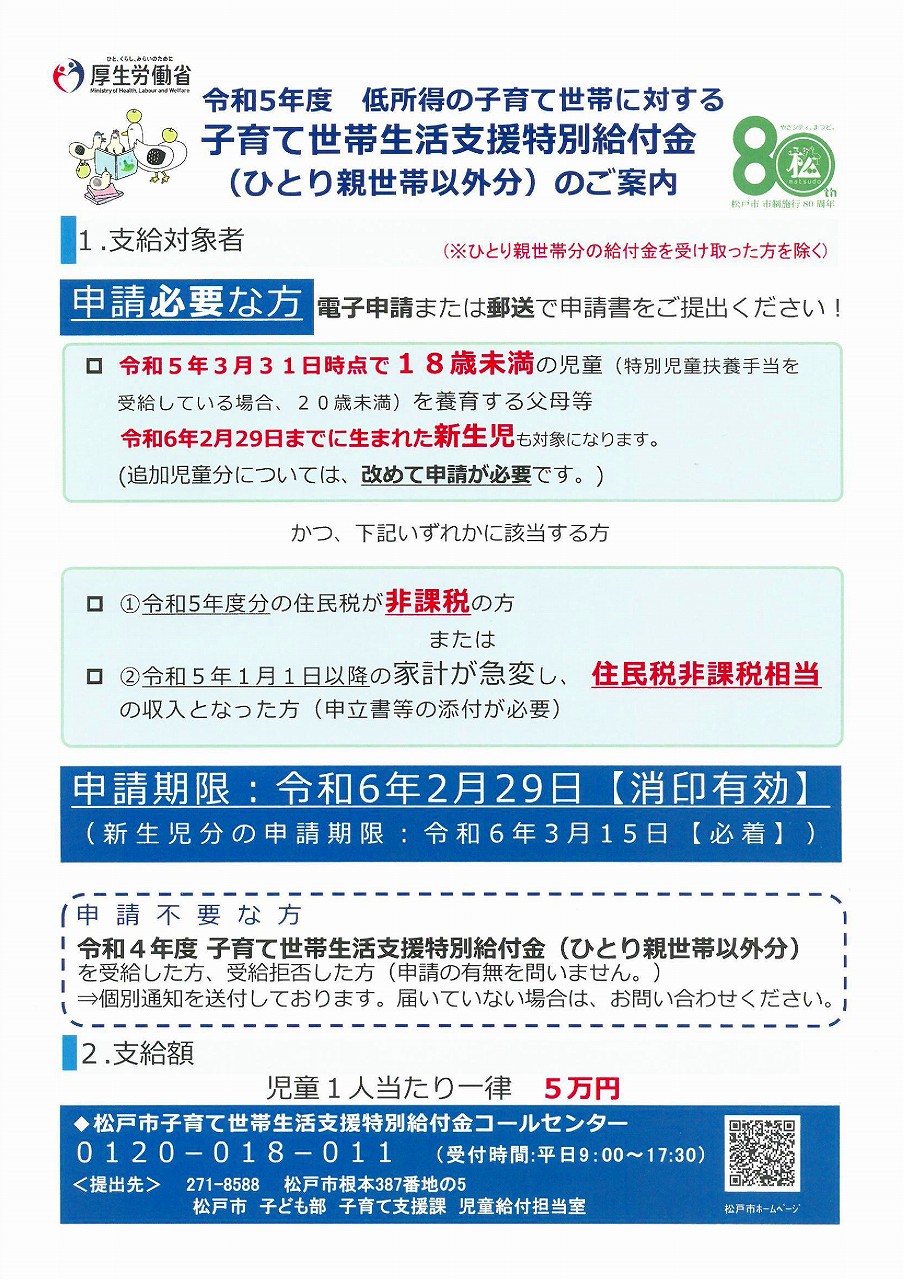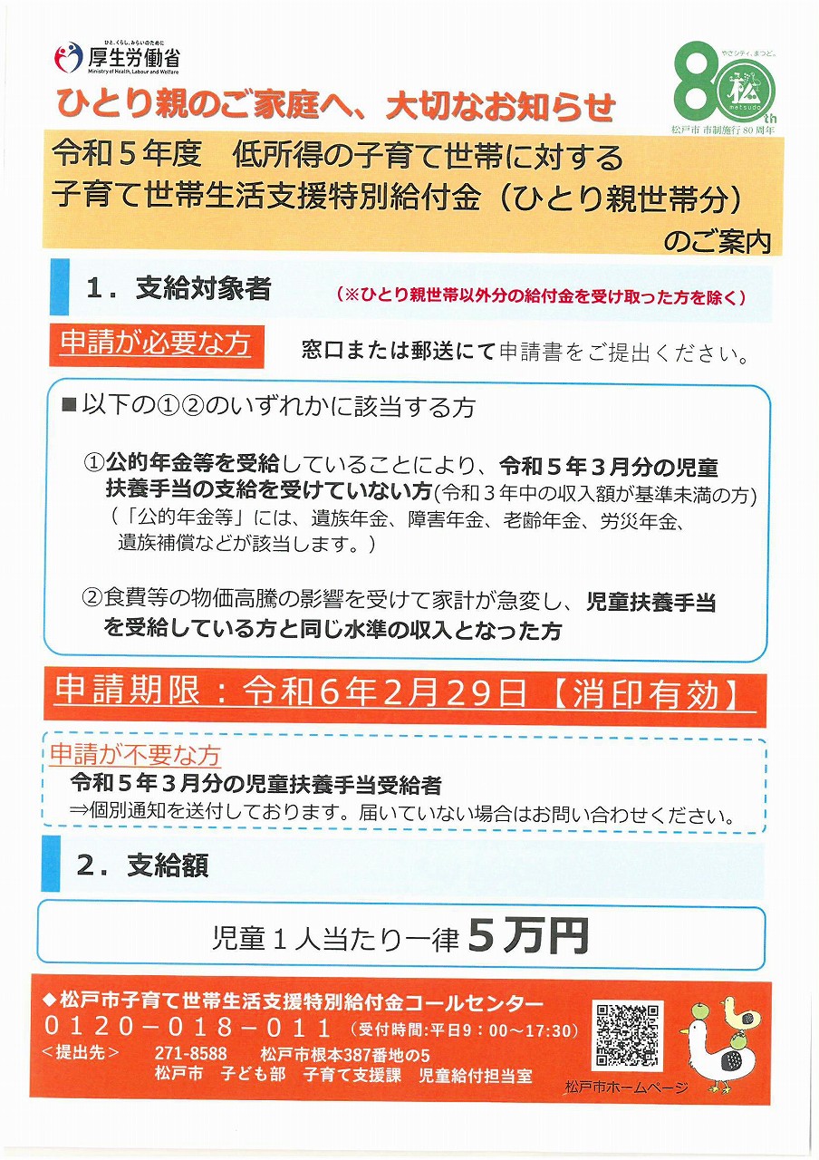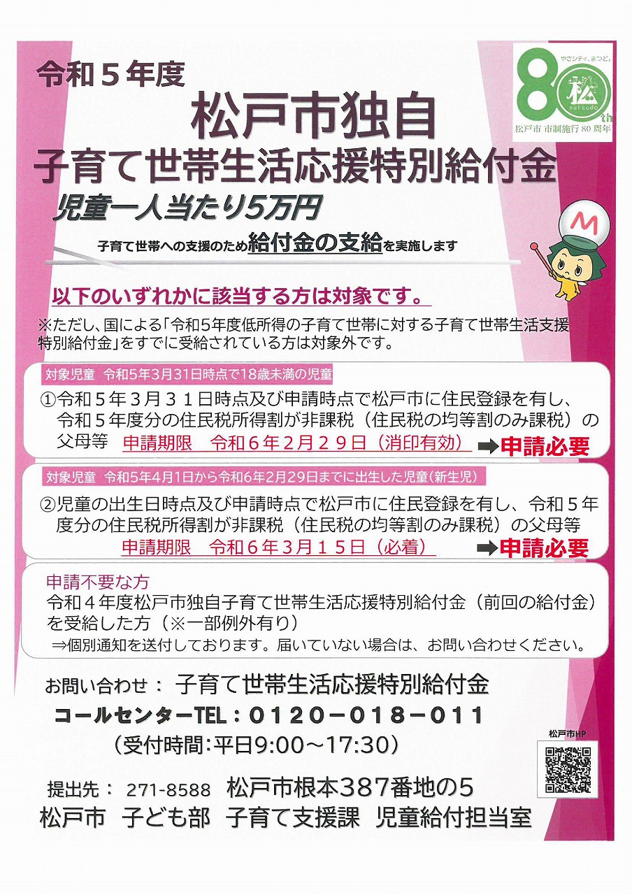 【地域情報】「令和5年度松戸市独自子育て世帯生活応援特別給付金」