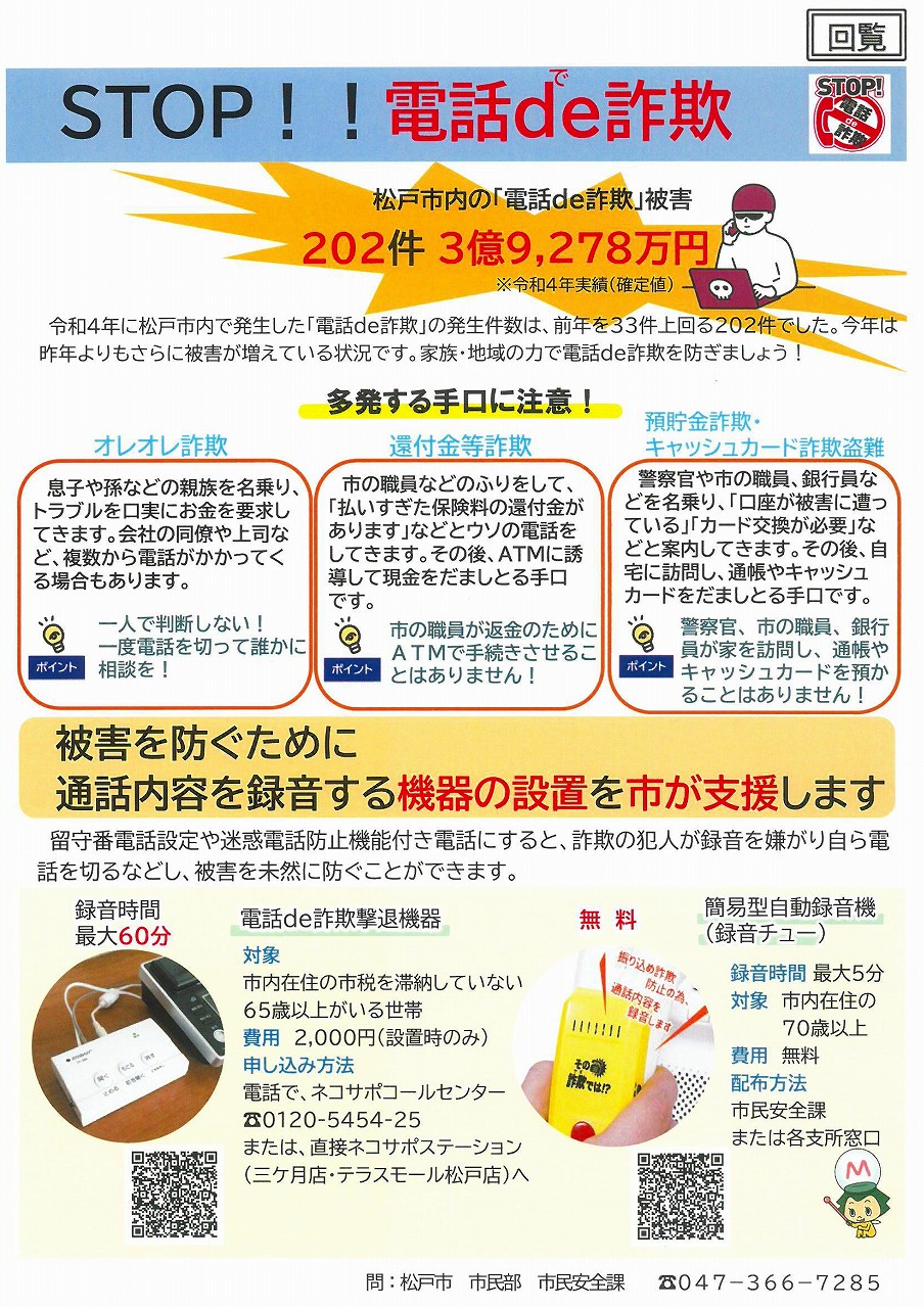 【地域情報】「STOP!!電話de詐欺」対策周知のための回覧物ポスター
