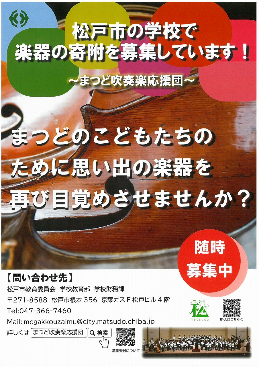 【地域情報】松戸市の学校への楽器寄附募集ポスター