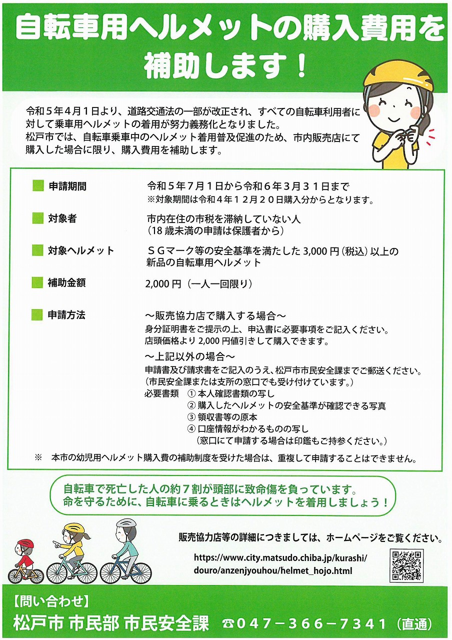 【地域情報】「自転車用ヘルメット購入費補助」に係るポスター